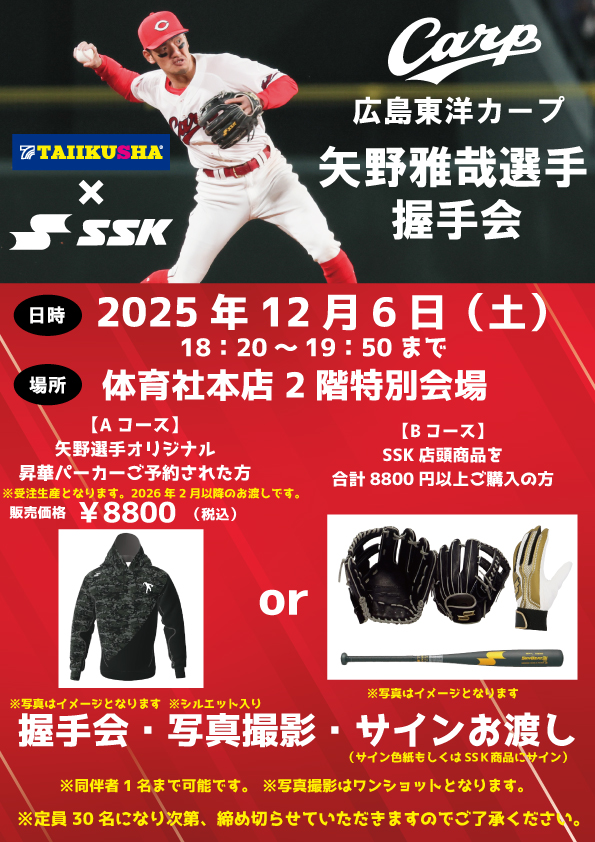 広島東洋カープ矢野雅哉選手握手会イベントを開催いたします!