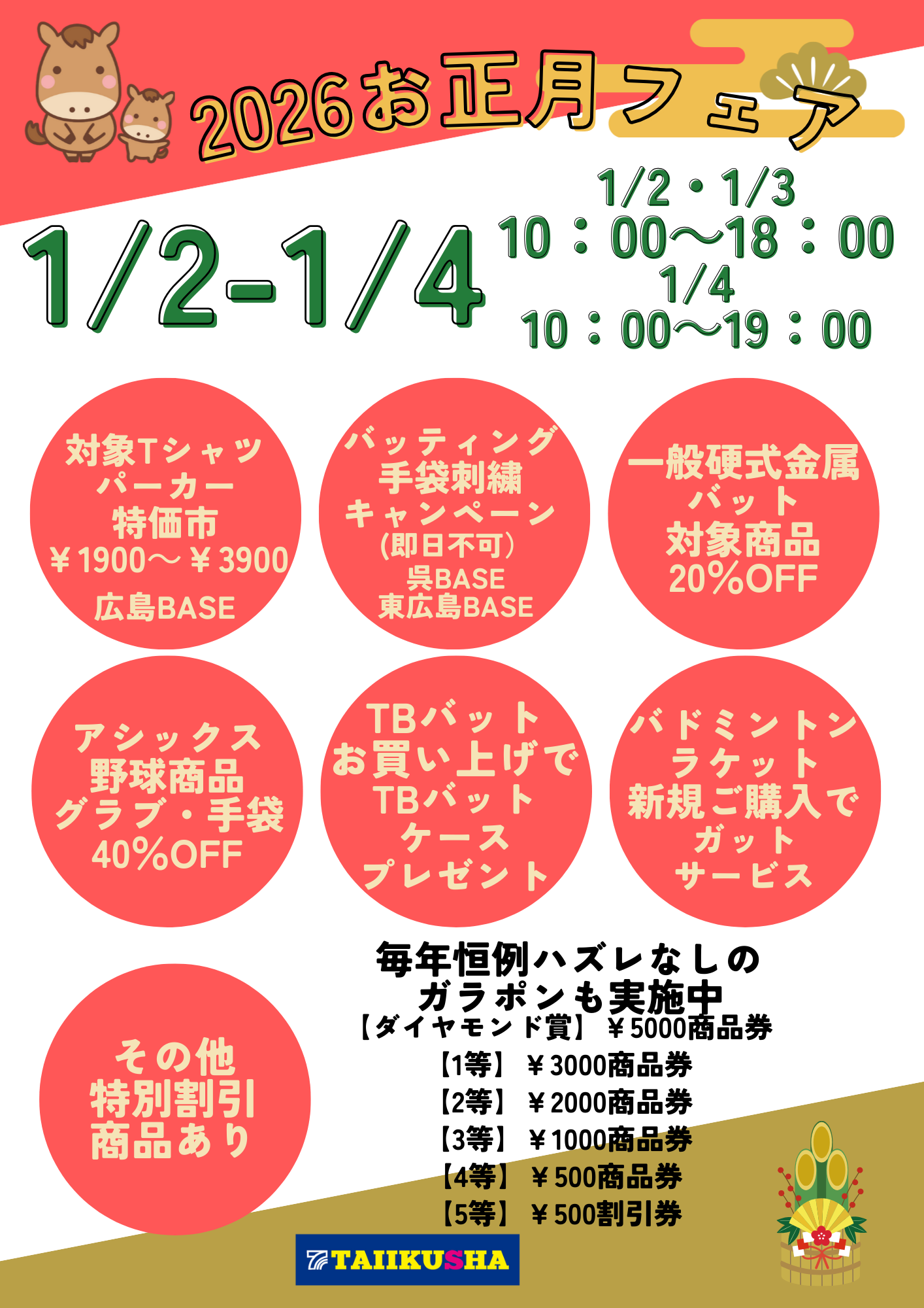 1月2日(金)~4日(日)まで全店でお正月フェアを開催いたします。