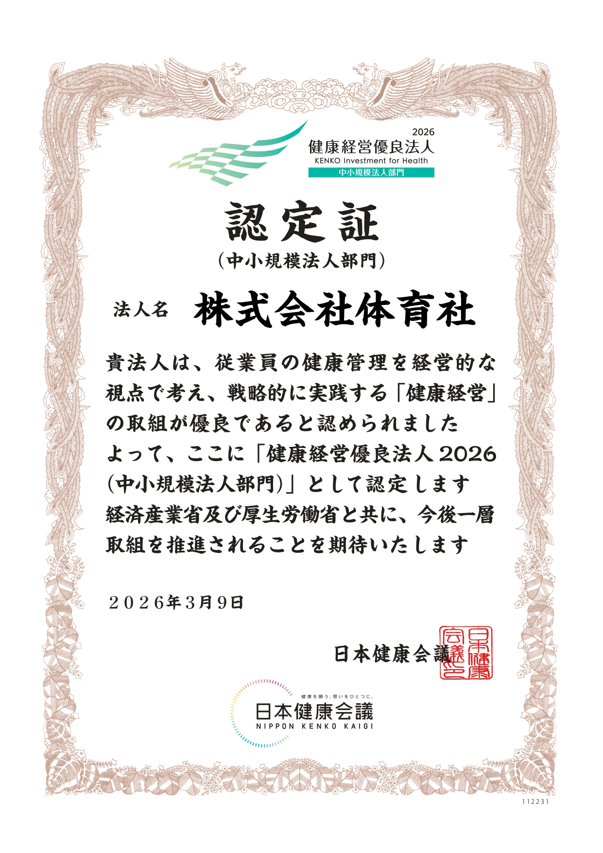 今年度2026年も「健康経営優良法人」~中小規模法人部門~にて